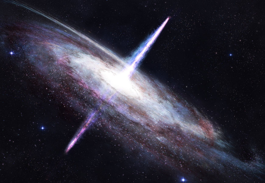 The radiation produced is across the electromagnetic spectrum from X-rays to infrared. (Credit:www.space.com & en.wikipedia.org/wiki/Quasar)
